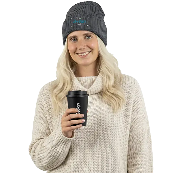 Für einen Hauch von Luxus wählen Sie dicke Strickmützen mit grobem Zopfmuster. Diese sind schwerer, fühlen sich hochwertig an und eignen sich perfekt für ausgewählte Werbegeschenke. Möchten Sie sie besticken? Das sorgt für ein noch schickeres Ergebnis.